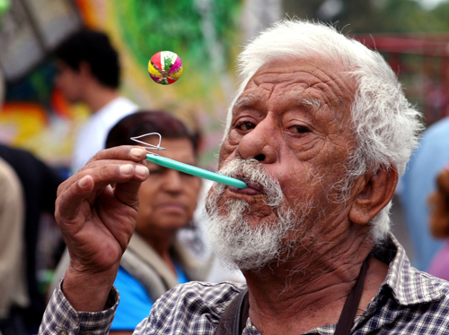 Un anciano sopla a través de un popote. En el otro extremo, equipado con una espiral de metal, flota una pelotita de unicel. Lo que vislumbraron muchas personas era un juguete artesanal que el anciano buscaba vender durante un desfile, para Víctor Casillas fue su pasaporte al primer lugar del Concurso Nacional de Fotografía Científica, organizado por el Consejo Nacional de Ciencia y Tecnología (Conacyt).